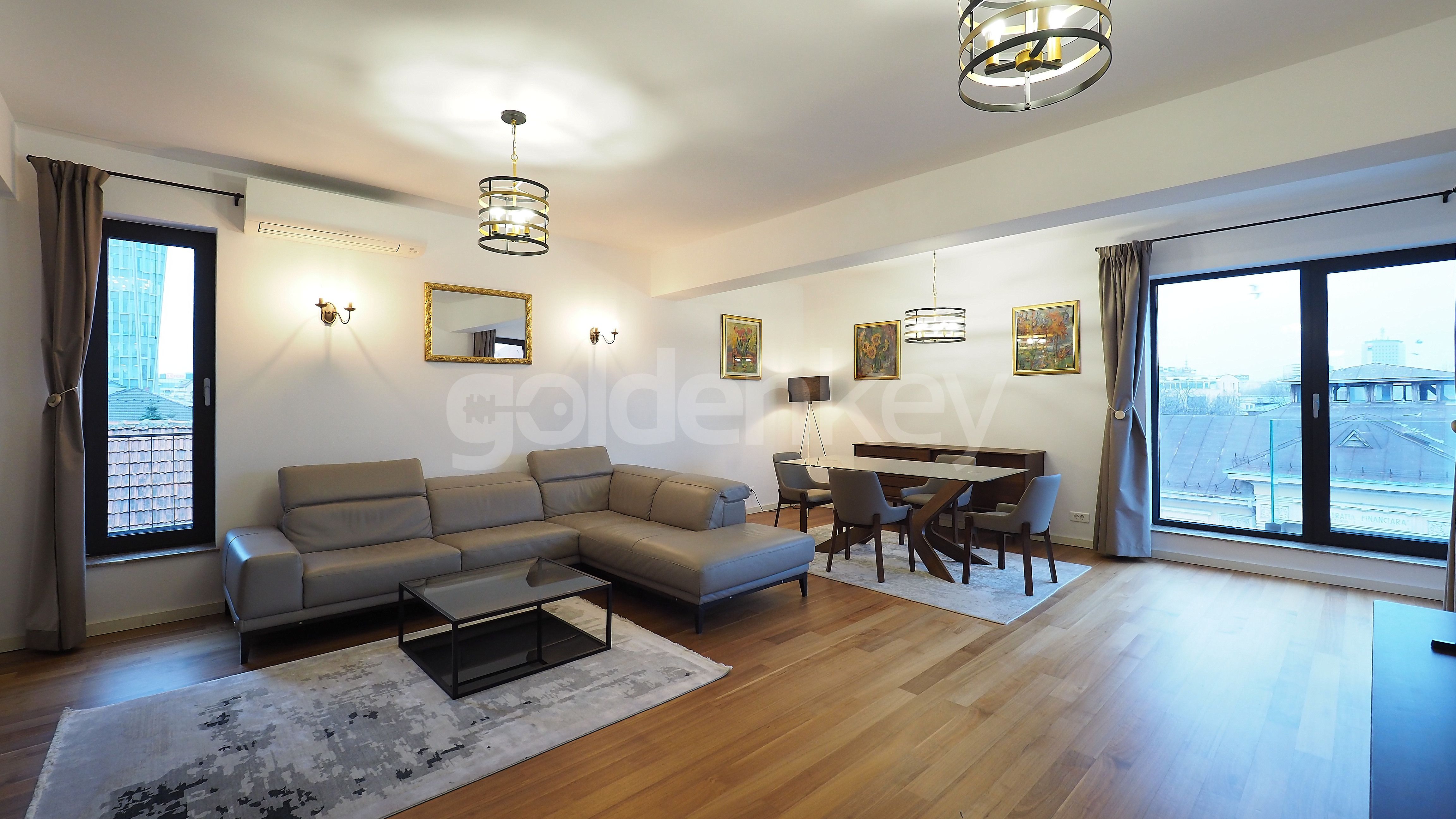 Located in a new building in Dorobanti Capitale area, 5 minutes walking to Victoriei Square, this 2 bedrooms penthouse apartment is on the 4th floor of a boutique Ug+Gf+5 building with only 6 apartments.