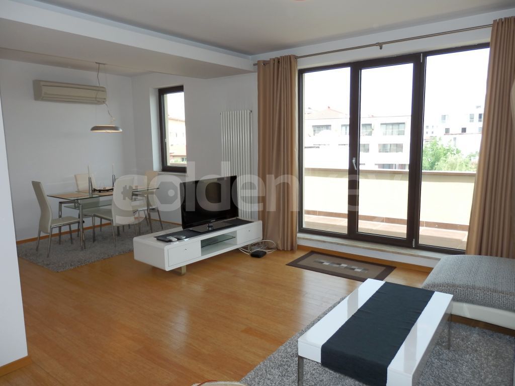 Near Herastrau Park, walking distance to Metro Station, this 2 bedrooms apartment is at the top floor of a 2010 Ug+Gf+5 building with one apartment per floor. The view is open towards greenery, the street is quiet.