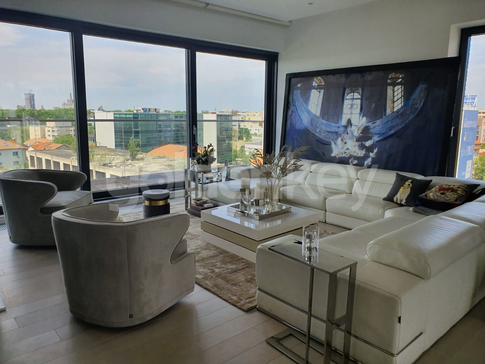 Placed in Herastrau area, with panoramic view over the park and lake, this 3 bedrooms duplex apartment is on the 6th+7th floors of a building Ug+Gf+11, completed in 2018.