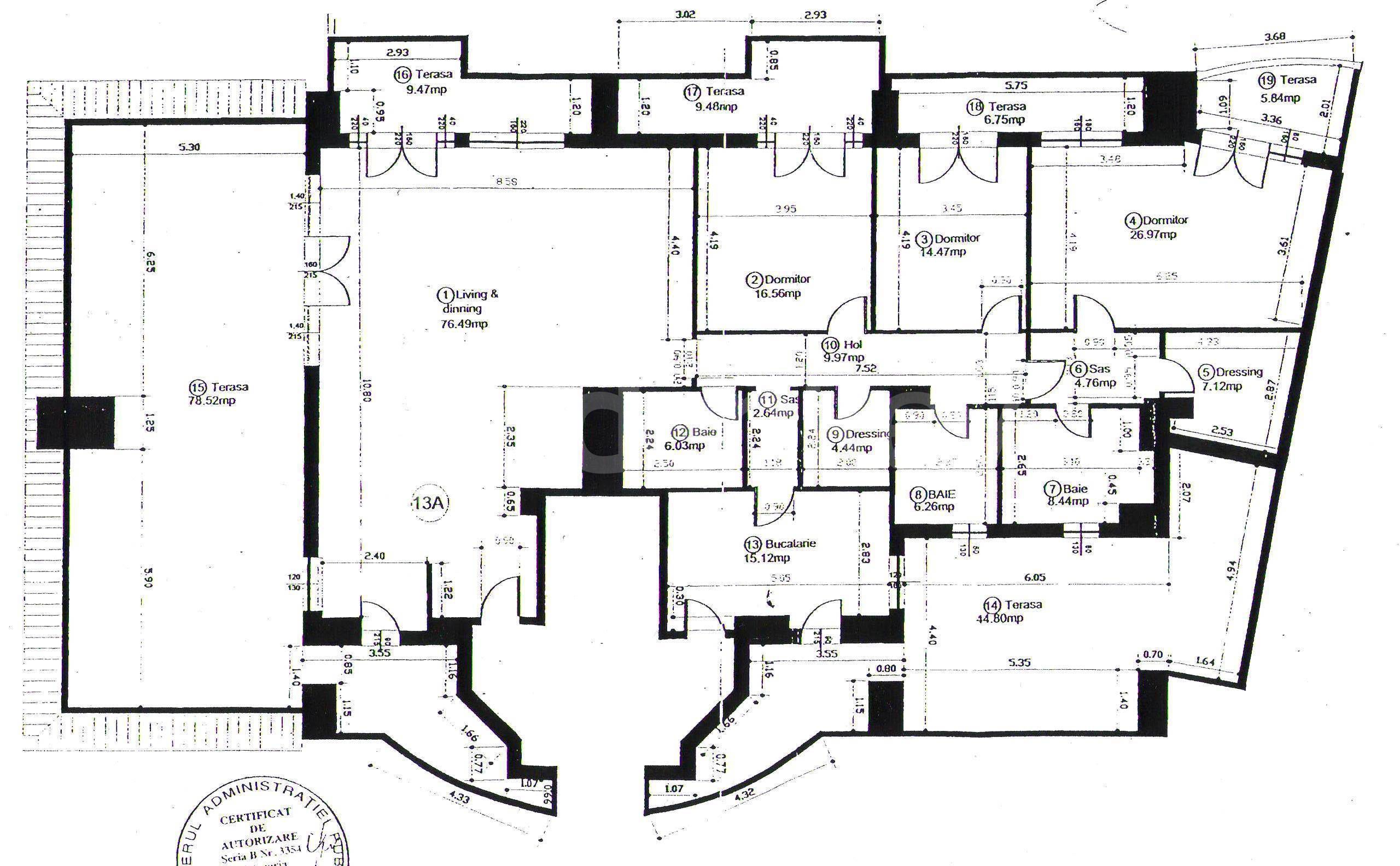 Located in Herastrau area, near French village-Le Club, this 3 bedrooms penthouse apartment is on the 5th floor of a building Ug+Gf+5 completed in 2004.