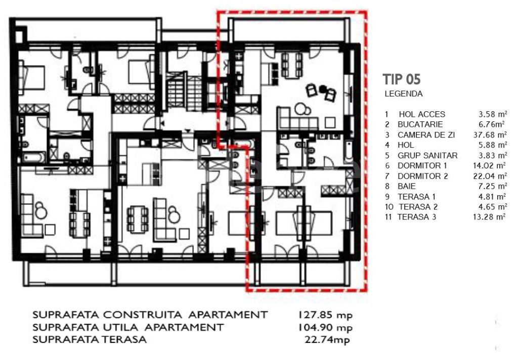 The chosen finishes are from the Premium range: aluminum carpentry system LOW-e and 4 Season, bathroom/hol/kitchen floors with natural stone or tiles, rooms with triple-layered parquet, interior doors made of solid wood, Wiessman Power Plant, A/C Daikin.