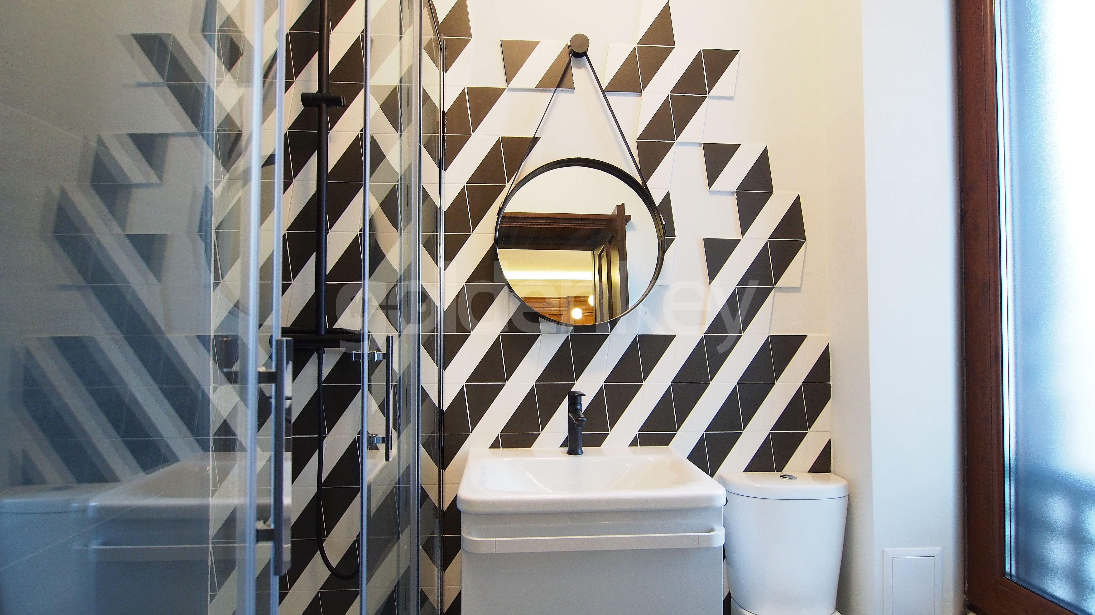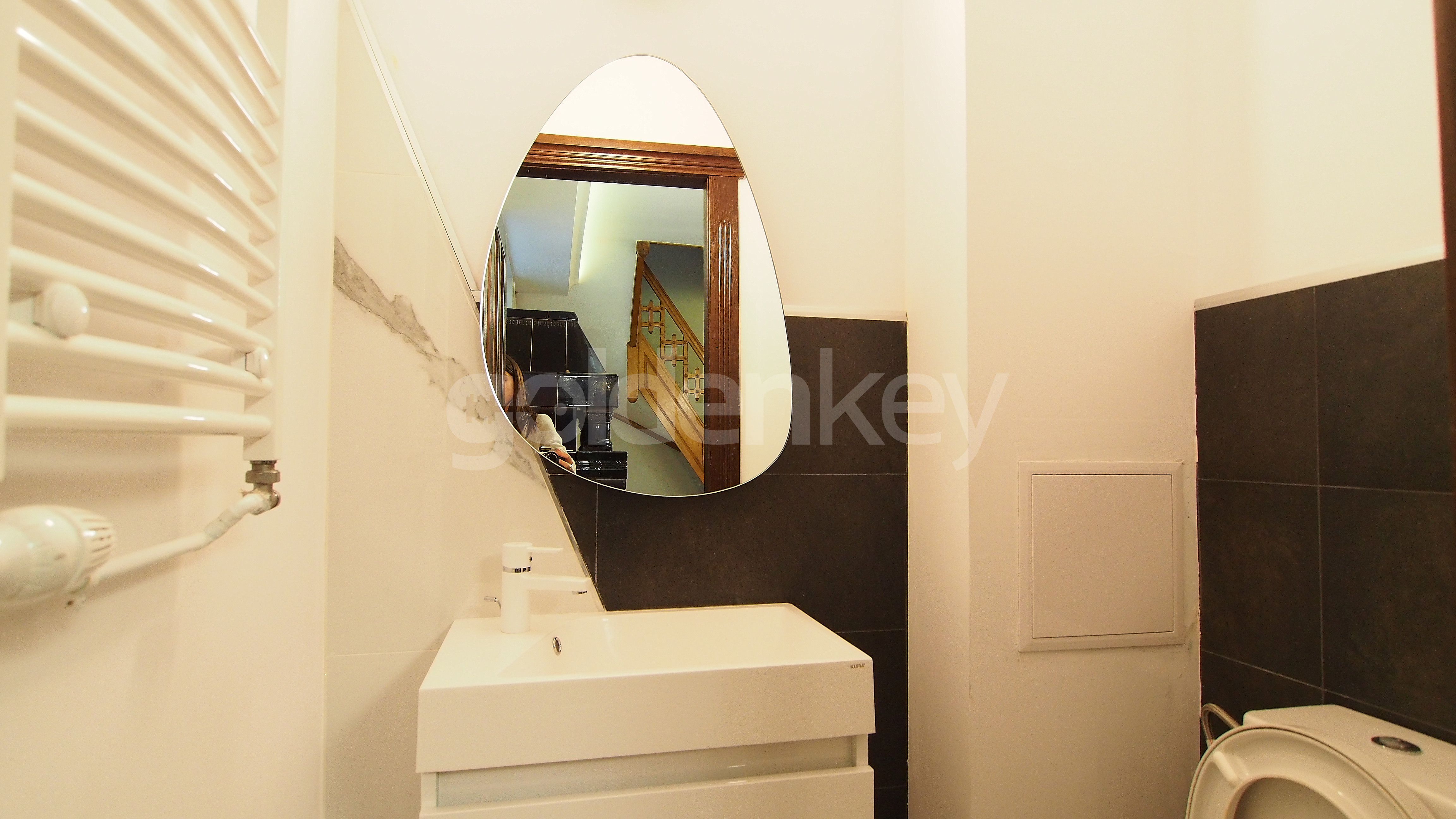The ground floor consists of open space, bright living room, closed and furnished kitchen, 1 bedroom and guests toilet.