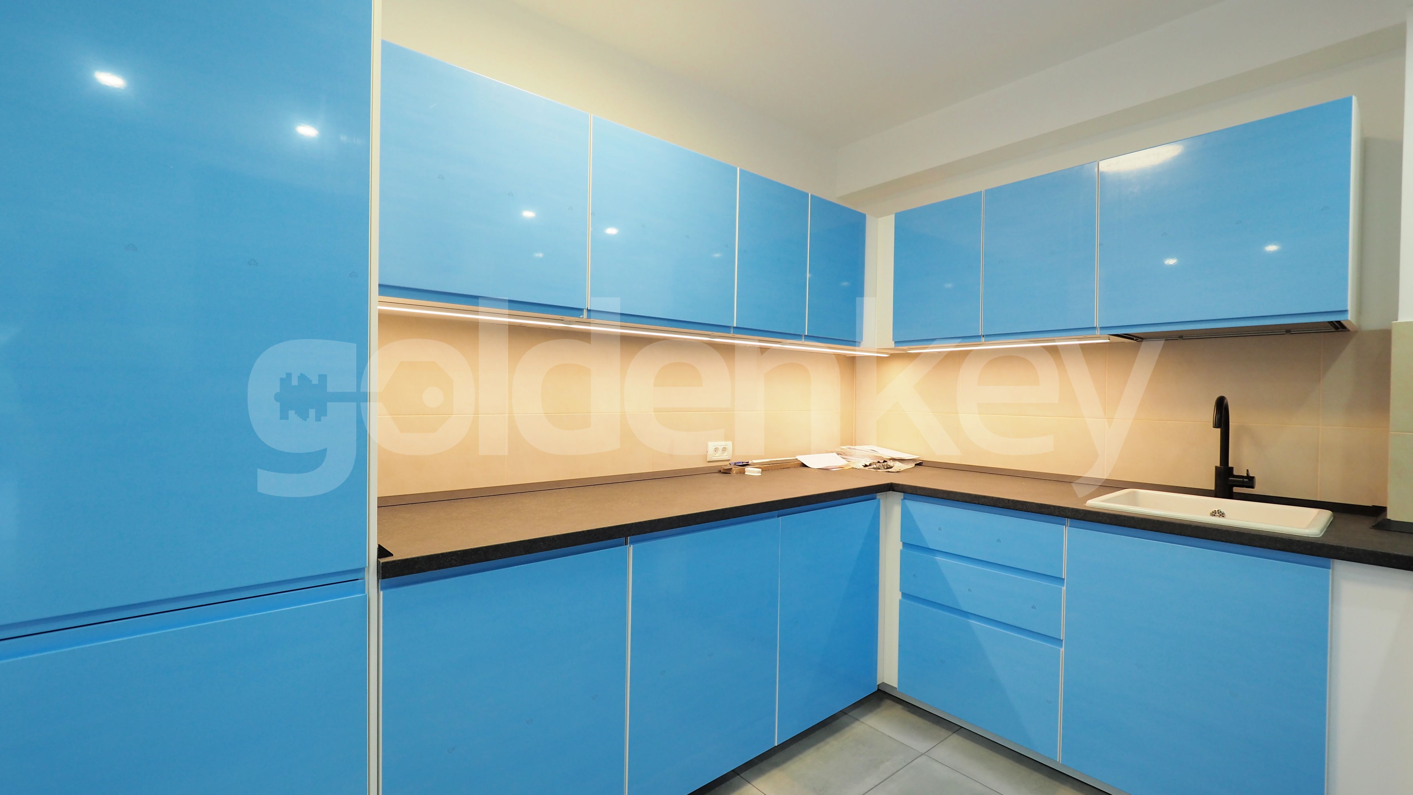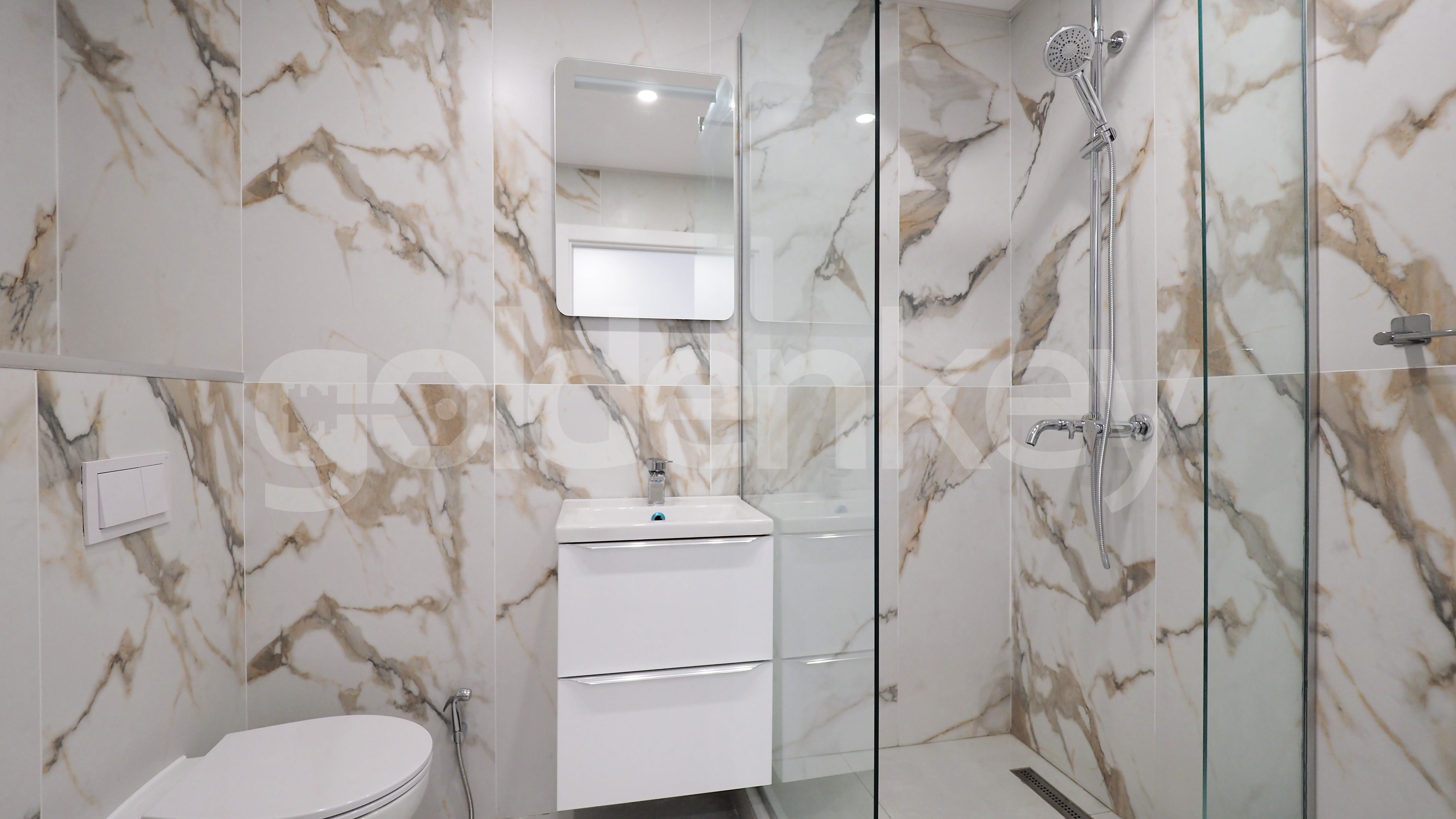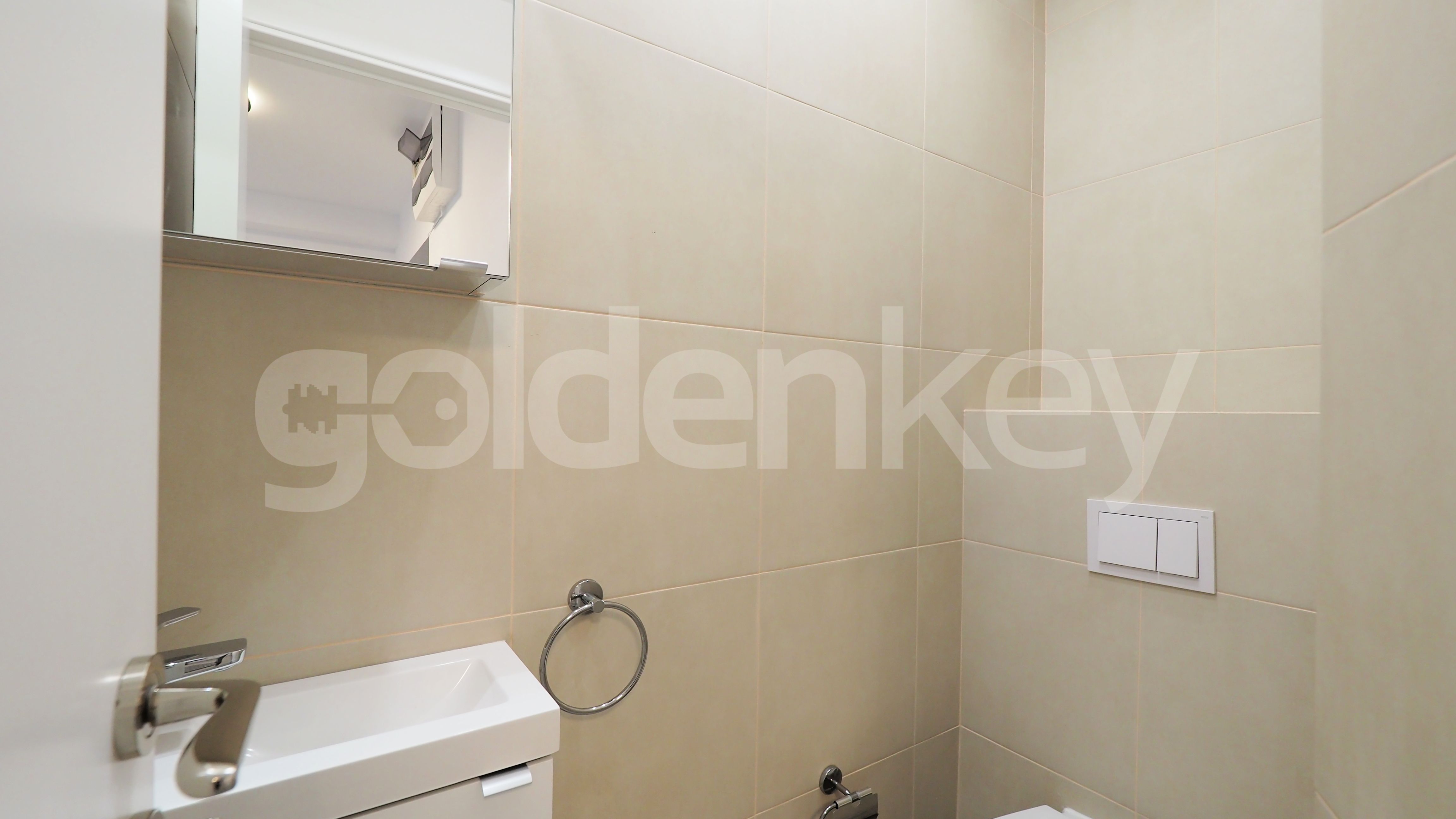 It is composed of 74sqm spacious living room with dining area, terrace, separate equipped kitchen, guest toilet, master bedroom with en-suite bathroom and dressing and 2 secondary bedrooms that share 1 bathroom.