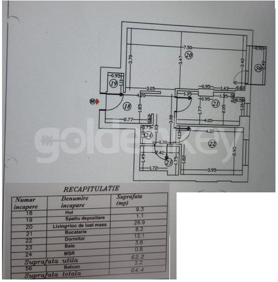 Are o suprafata construita de 75mp din care 63mp utili.