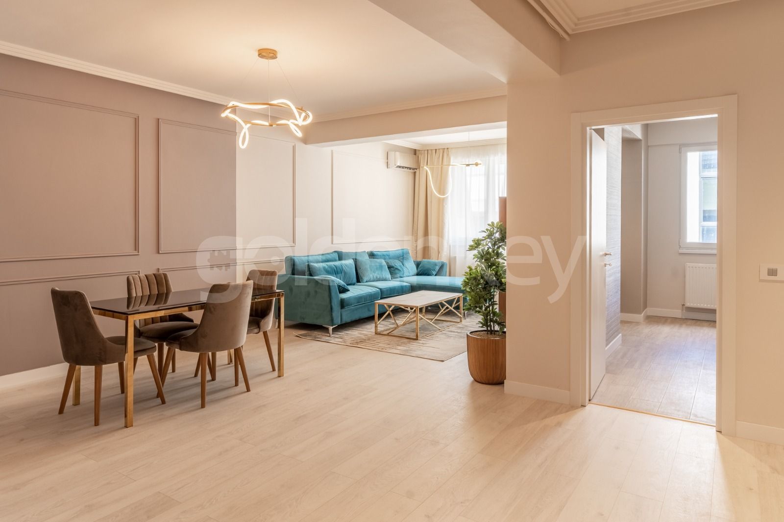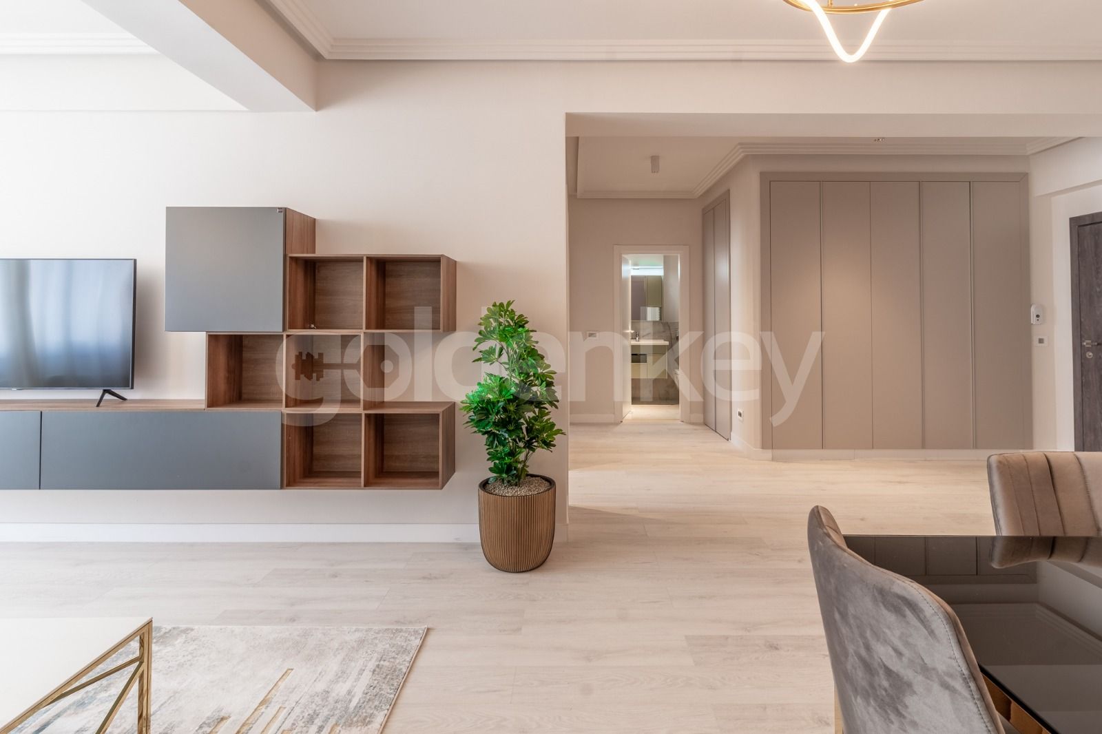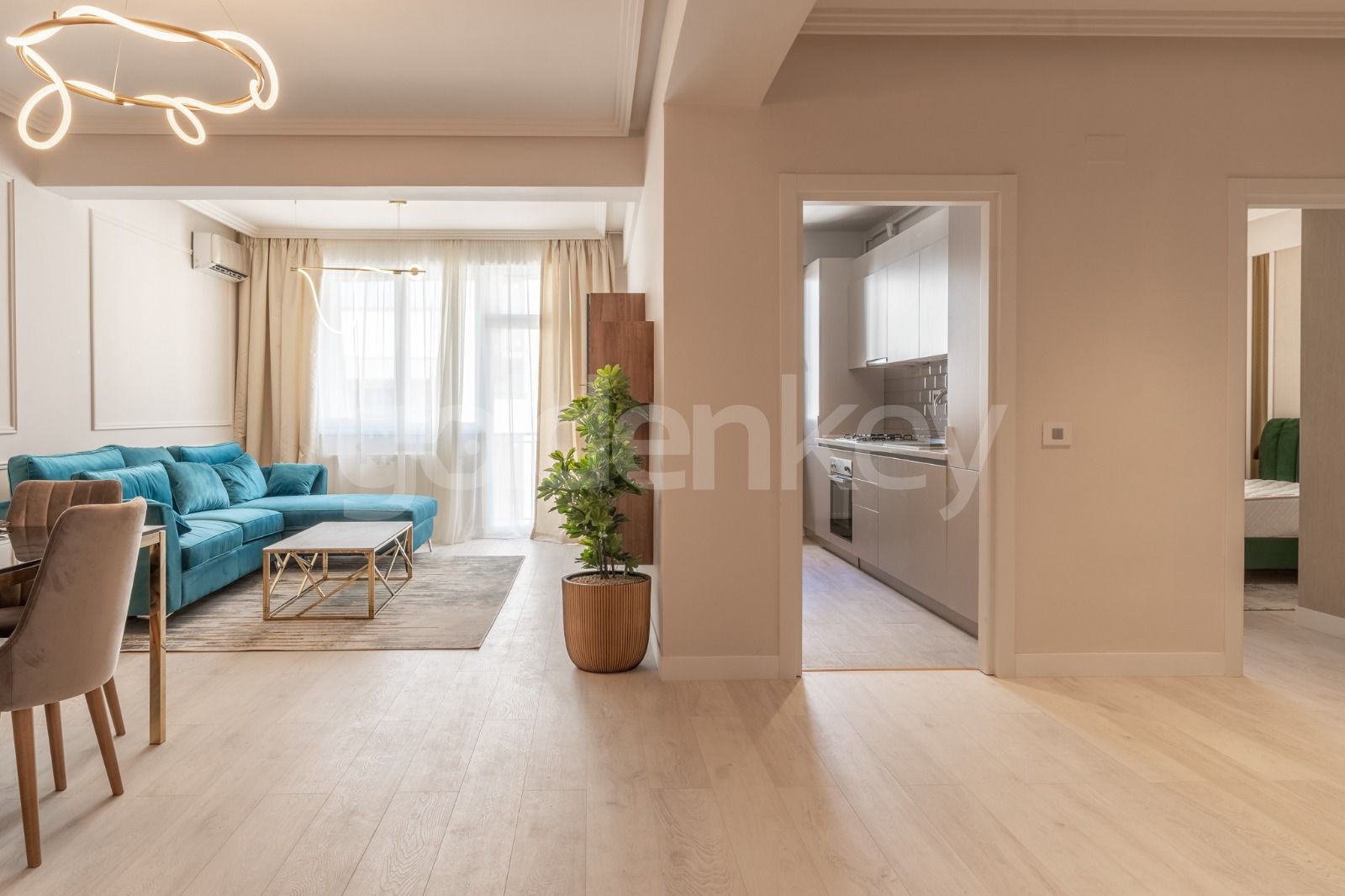 Apartamentul este complet mobilat, beneficiaza de finisaje de inalta calitate.
