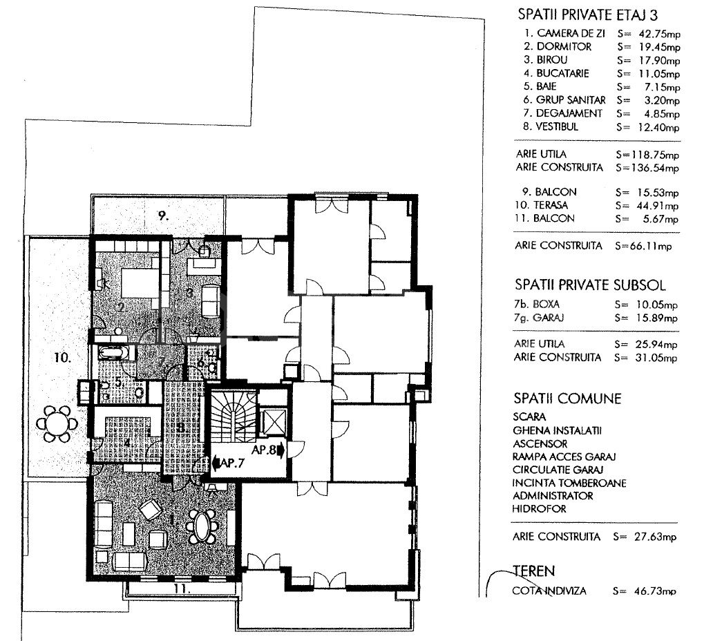 Are o suprafata totala de 211mp, 120mp utili si 66mp terase.