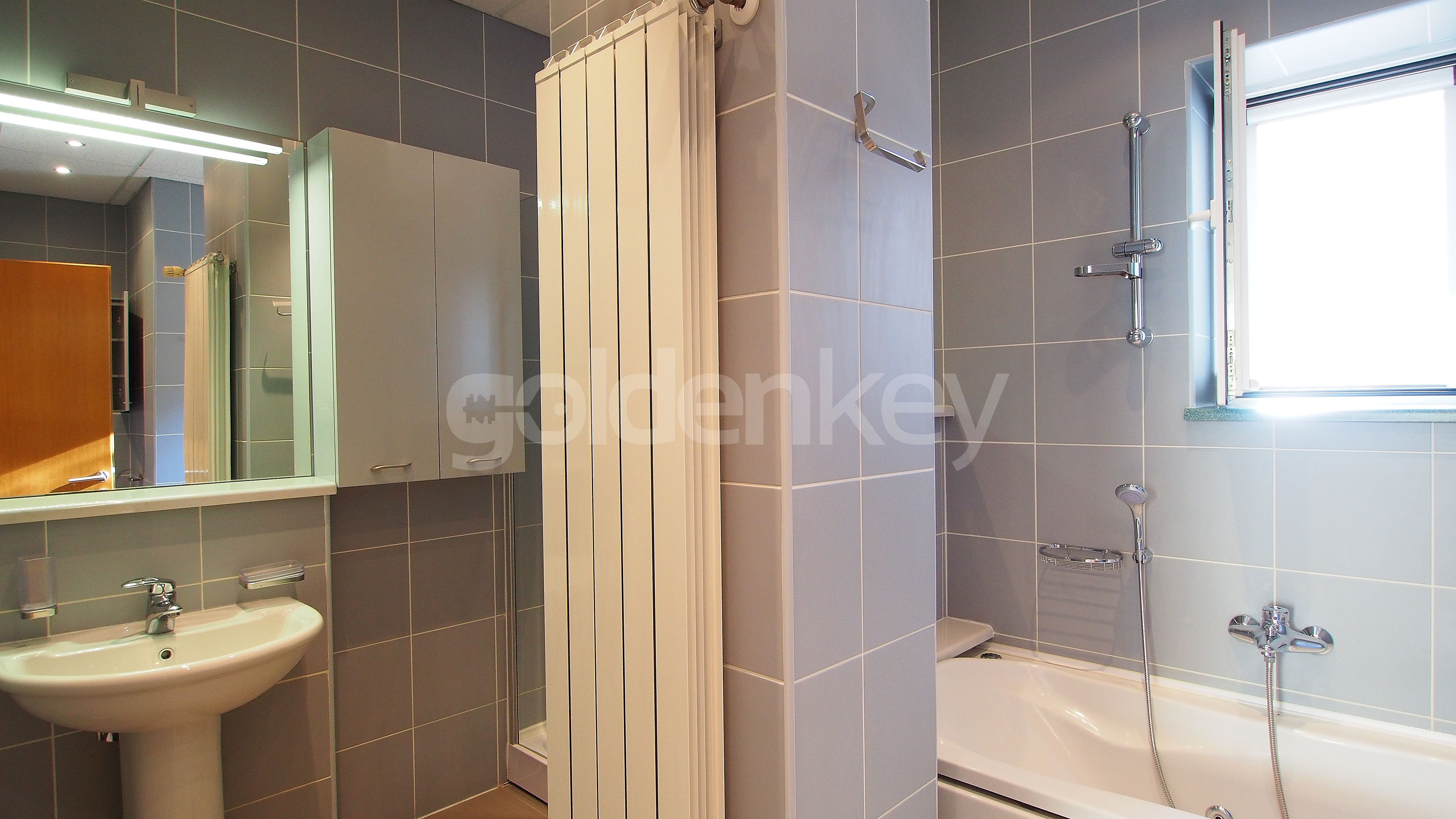 Este compus din living spatios cu iesire pe terasa, bucatarie separata si utilata, grup sanitar cu dus, dormitor matrimonial cu dressing, balcon si baie proprie si 2 dormitoare care impart o singura baie.