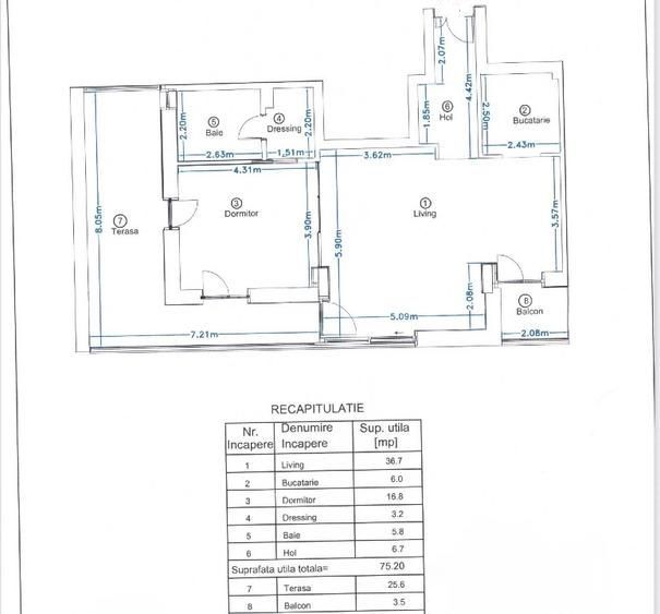Are o suprafata construita de 112mp dintre care 75mp utili si 30mp terase.