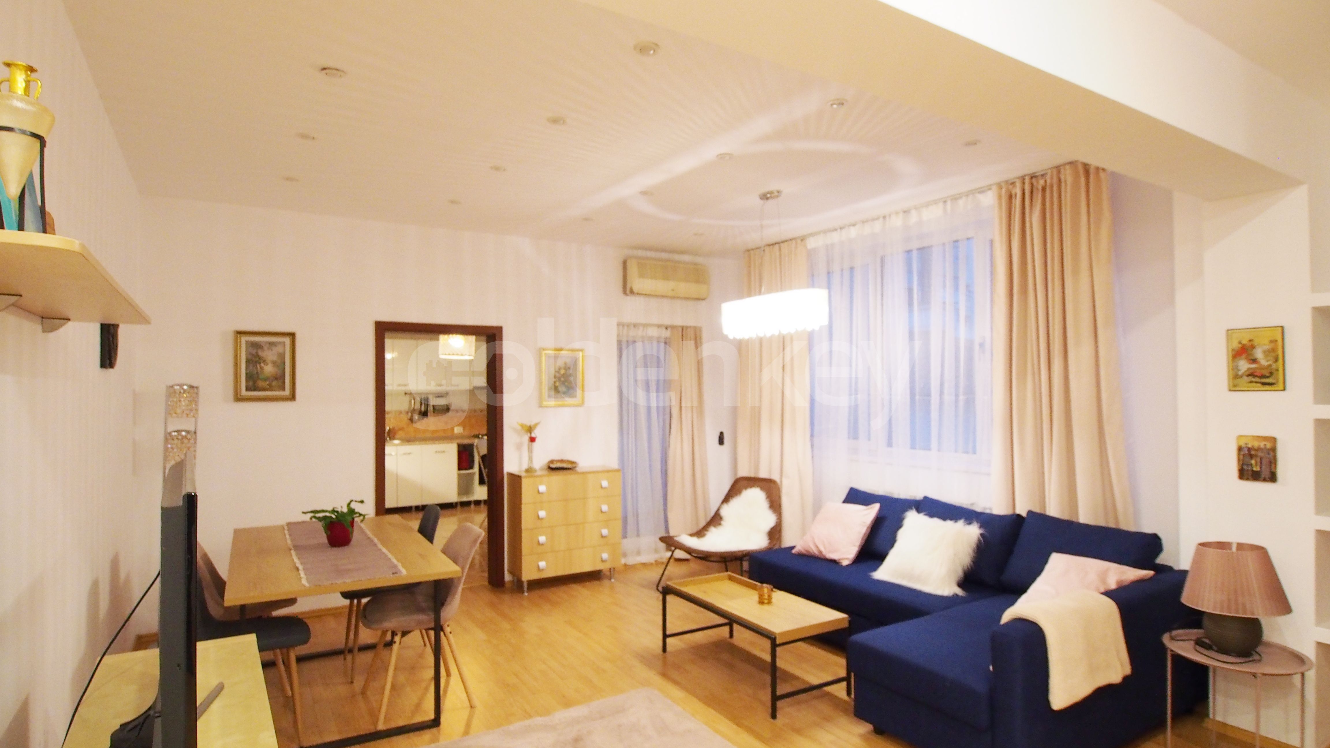 Este compus din living spatios si luminos cu zona de dinning, bucatarie inchisa mobilata si utilata complet, grup sanitar, dormitor matrimonial generos, dormitor secundar cu iesire pe balcon.
