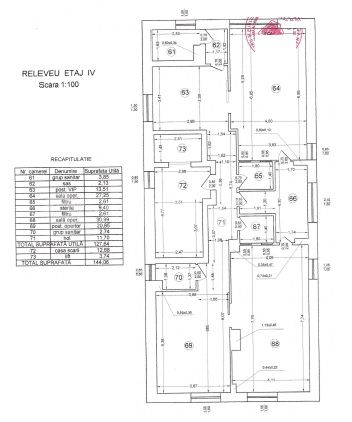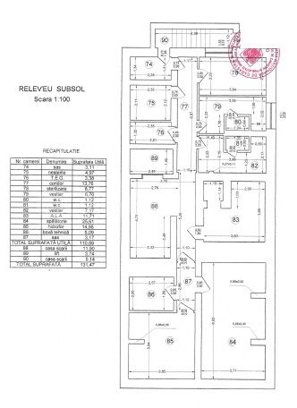 Subsolul este pentru utilitati tehnice si dispune de un spatiu de 110mp, parterul de 126mp, compus din 4 camere, 3 bai, etajul 1de 121mp, compus din 6 camere, 2 bai, etajul 2 de 124mp, compus din 8 camere, 3 bai, etajul 3 de 124mp, compus din 7 camere, 3 bai si bucatarie si etajul4 de 128mp, compus din 5 camere, 2 bai.