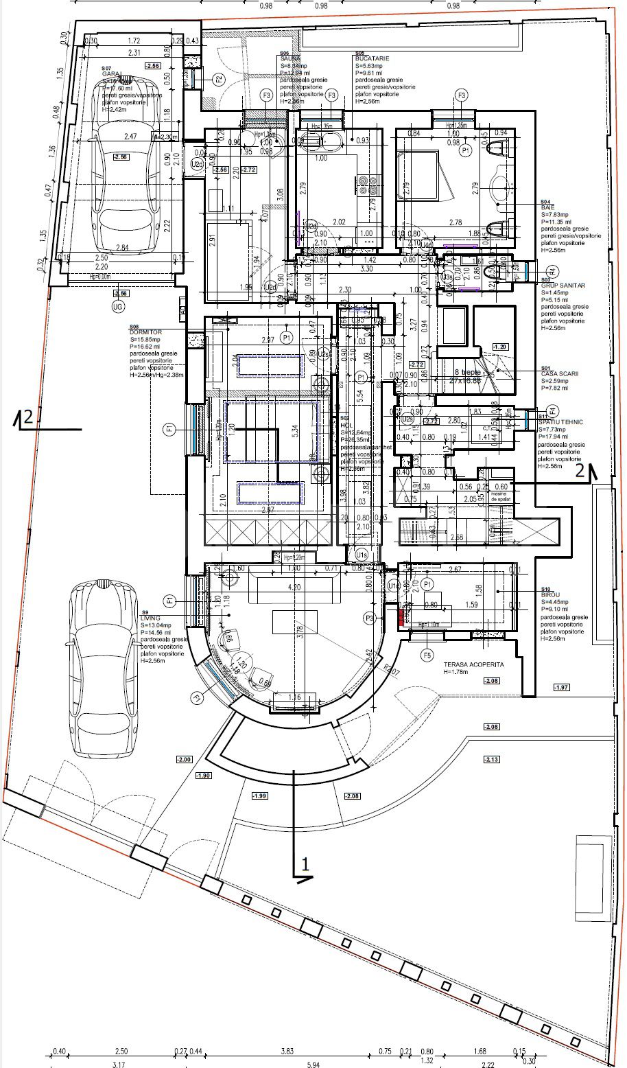 Demisolul este compus din zona de living/dormitor 4, bucatarie complet echipata, dormitor, baie si grup sanitar, spalatorie si depozitare/fitness.