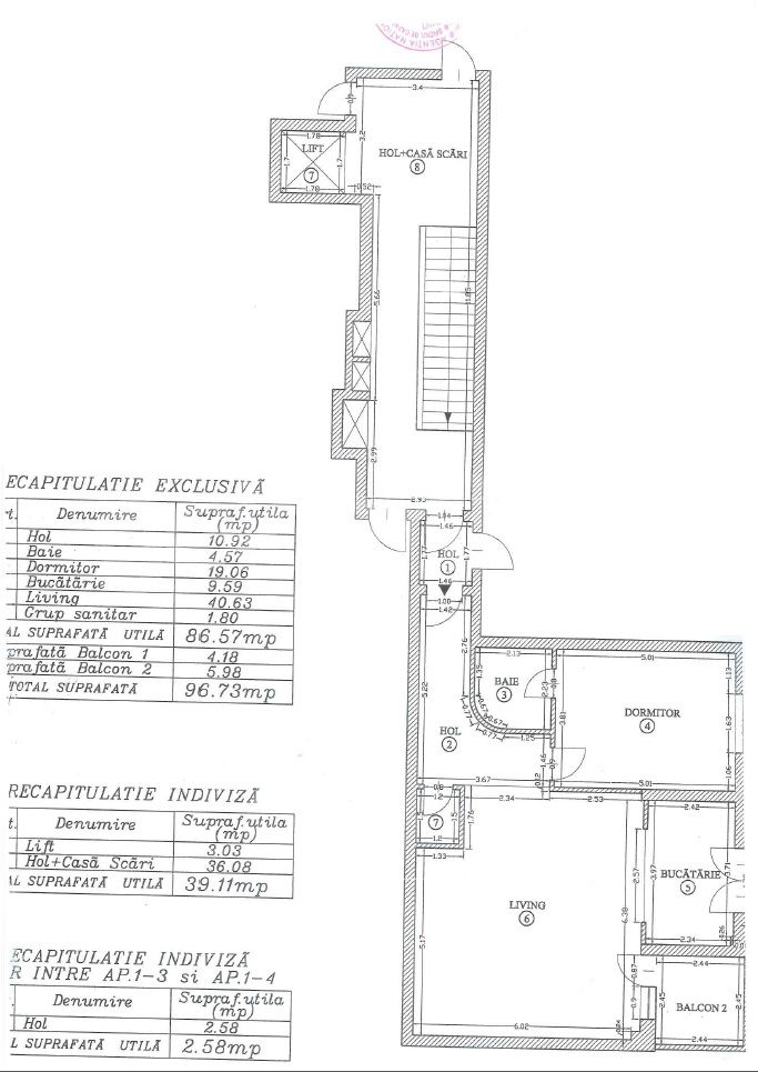 Are o suprafata totala de 97mp si 87mp utili.