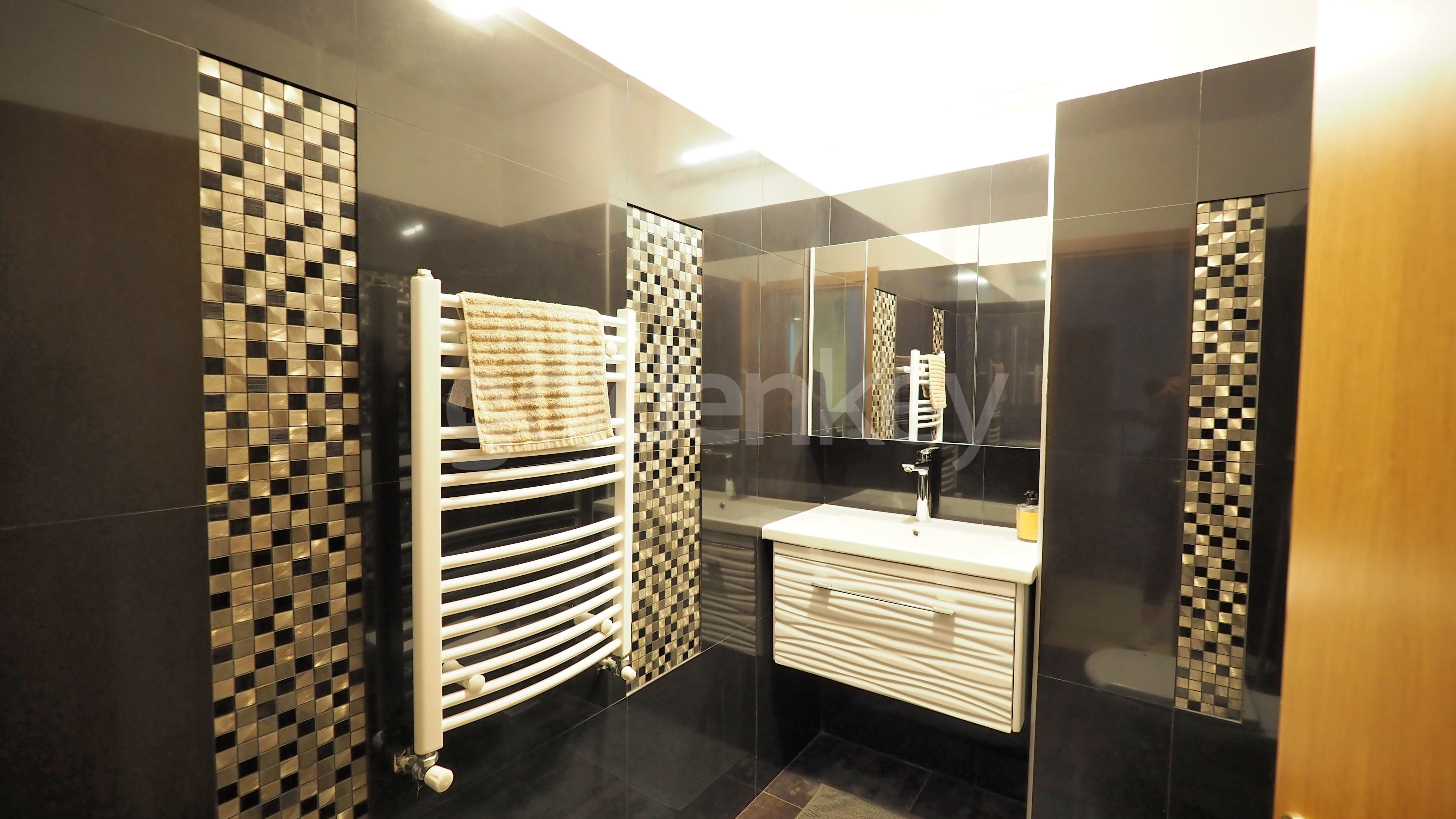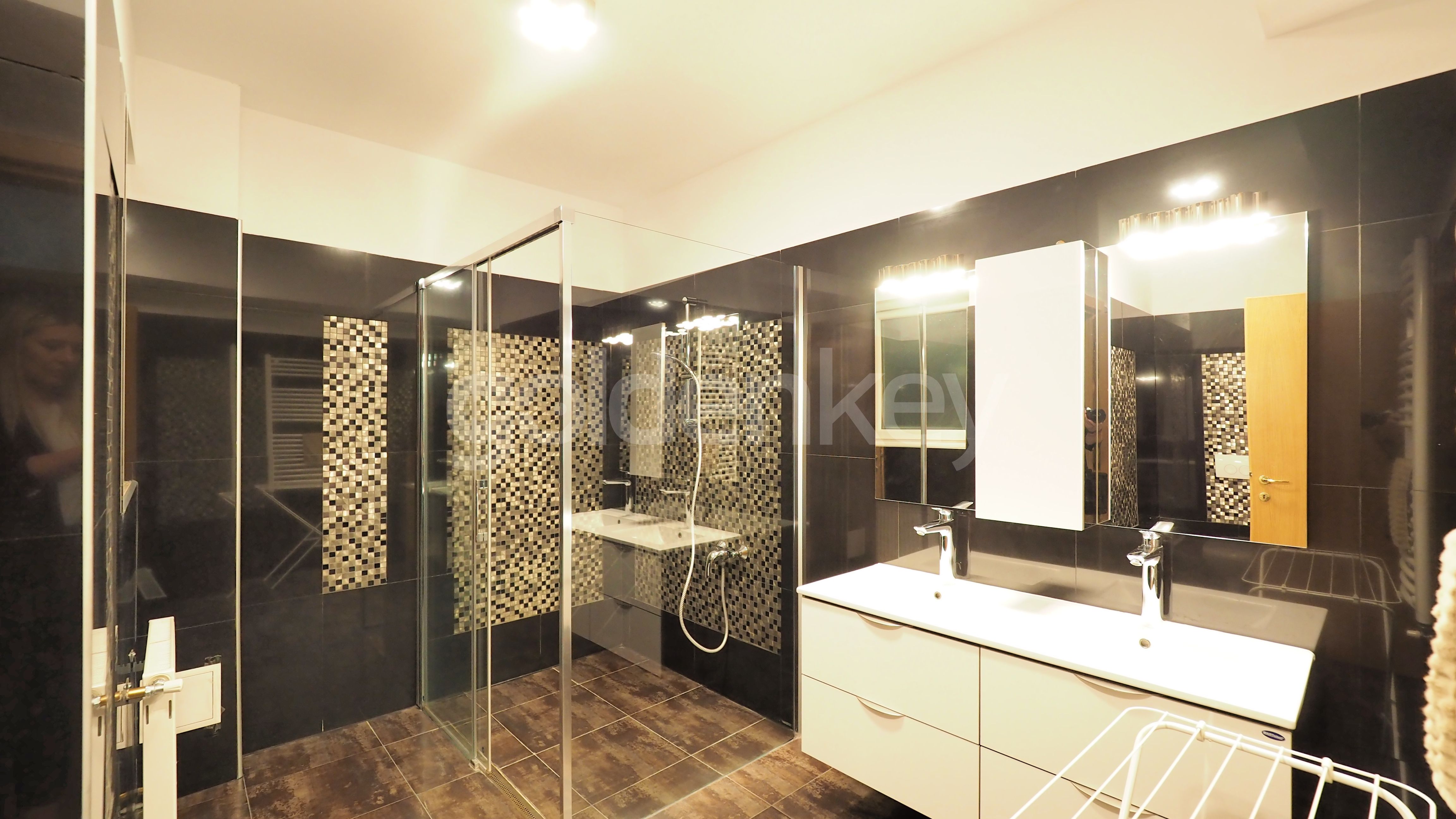 Este compus din living, bucatarie inchisa si complet echipata, grup sanitar, dormitor matrimonial cu baie proprie si dormitor secundar.