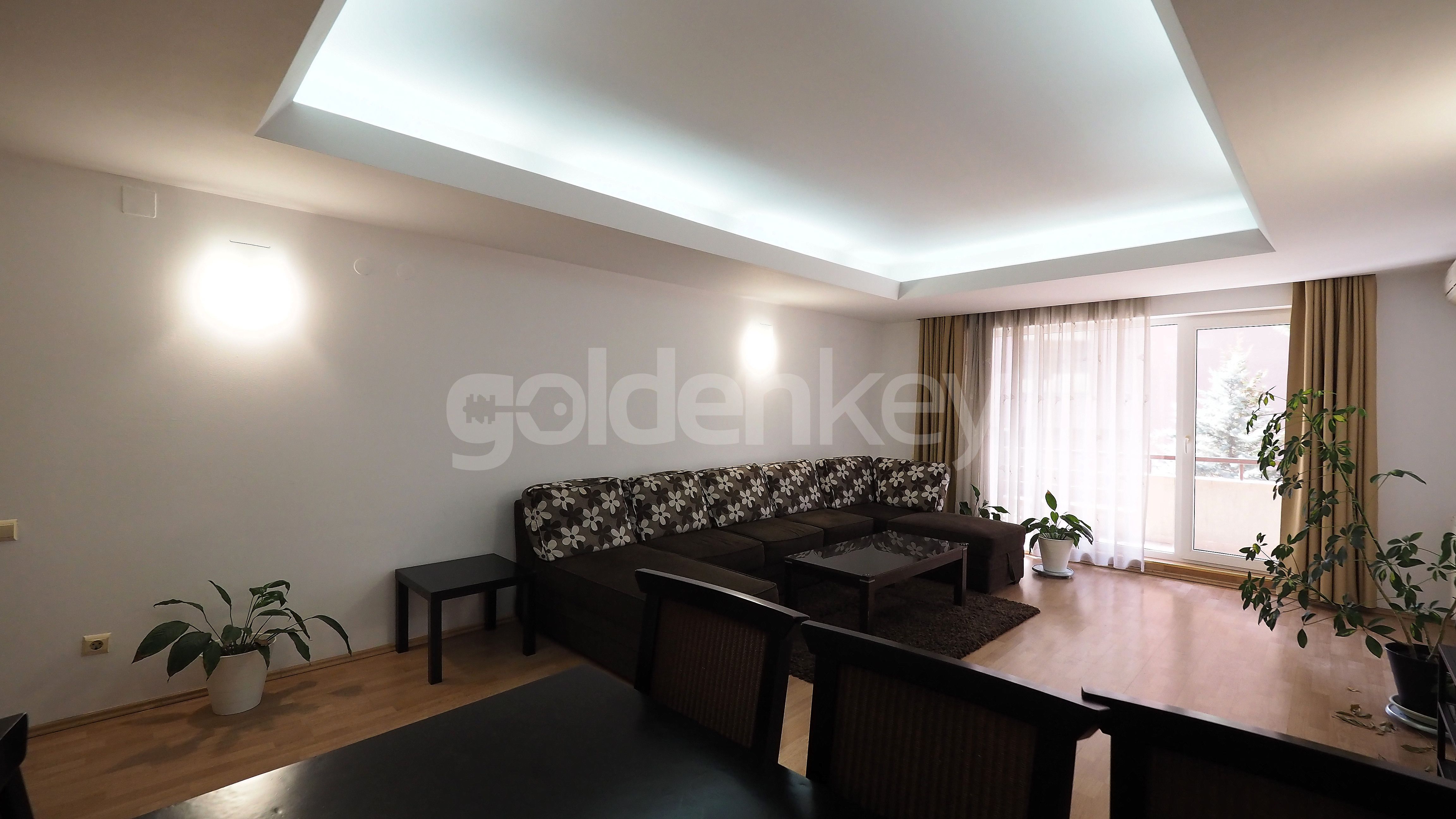Este compus din living spatios cu zona de dining , terasa, bucatarie inchisa, complet echipata, dormitor matrimonial cu baie proprie si 2 dormitoare secundare care impart o baie.