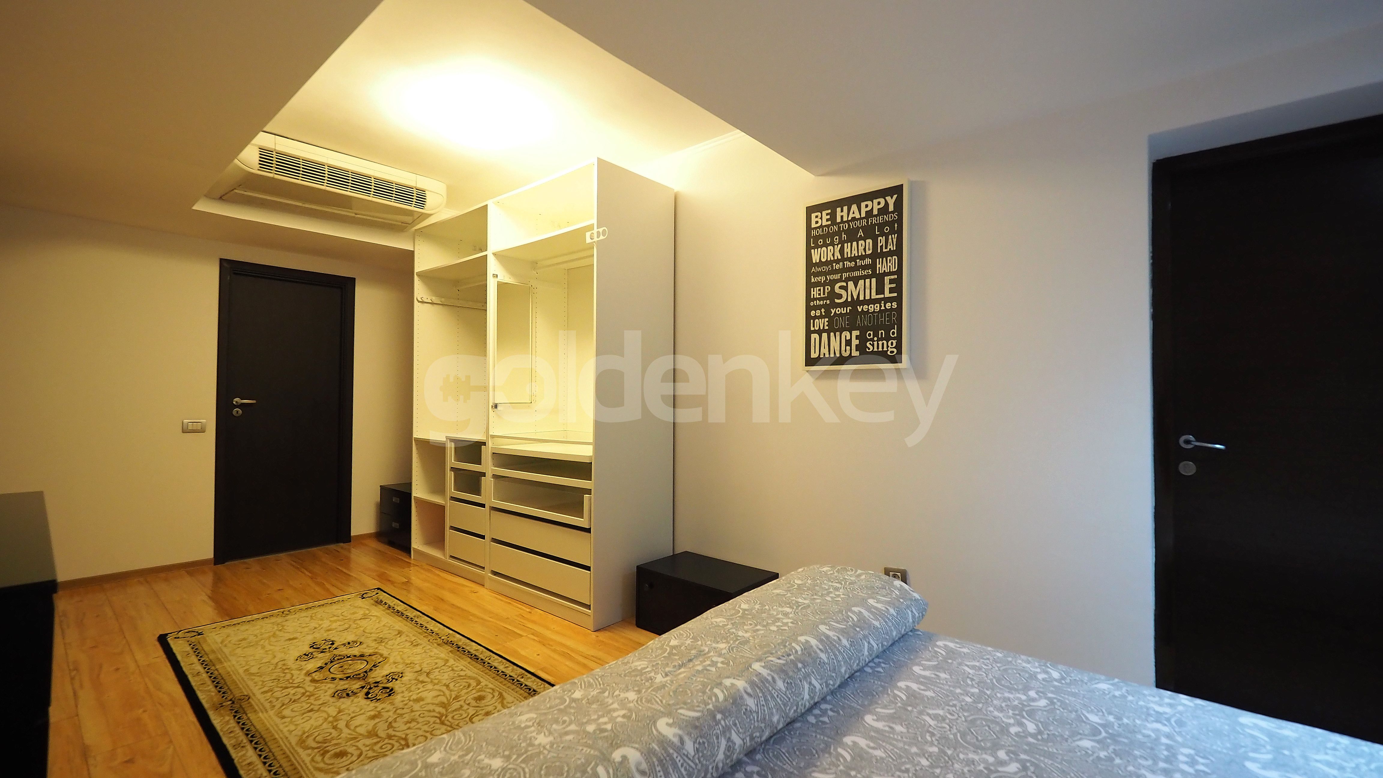 Este compus din living spatios cu zona de dining, bucatarie deschisa si echipata, grup sanitar, dormitor matrimonial cu baie proprie si dressing si 2 dormitoare secundare care impart cea de-a 2-a baie.