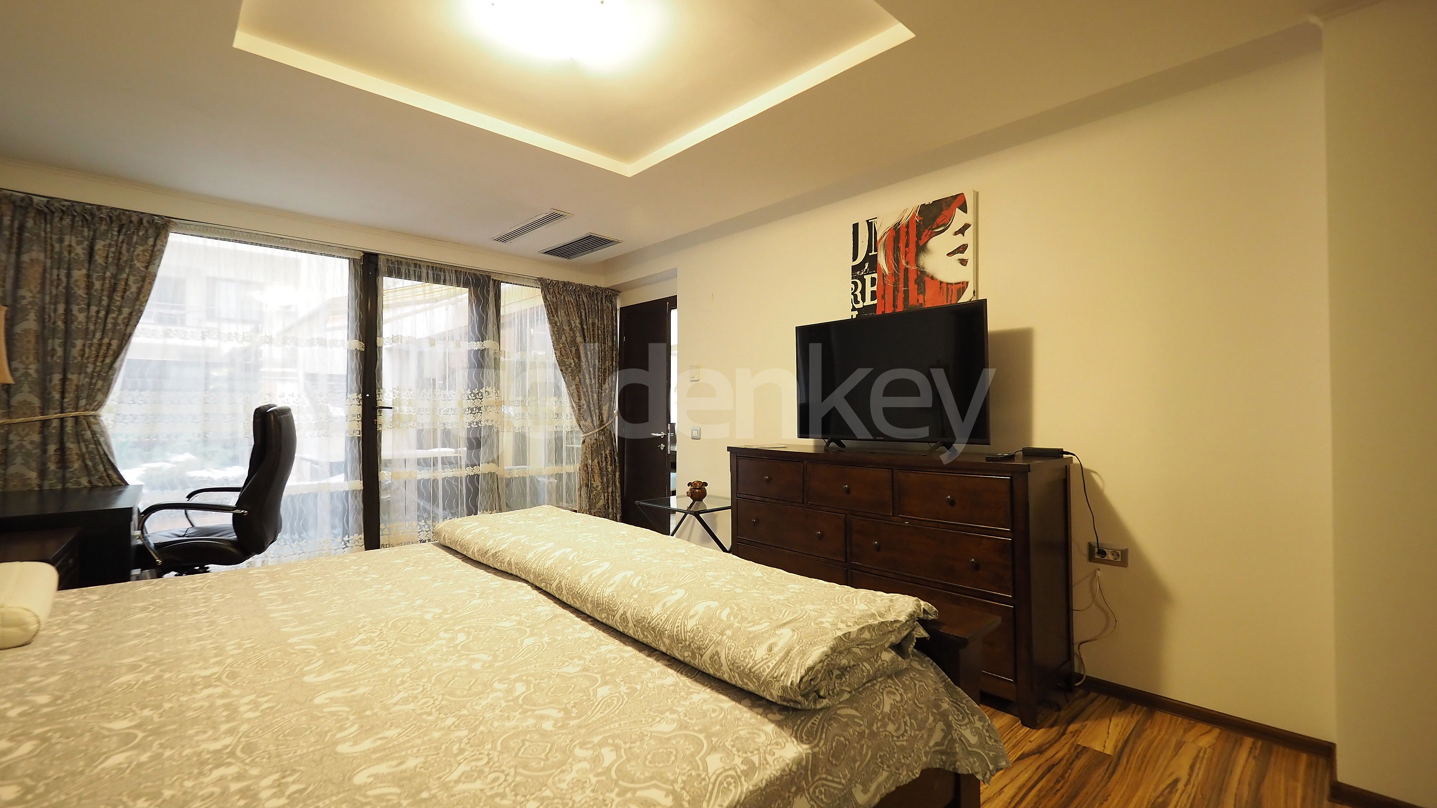 Acest apartament cu 4 camere este situat in zona Herastrau, intr-un complex rezidential cu piscina interioara si sala fitness, la parterul unui imobil S+P+6 finalizat in 2005.