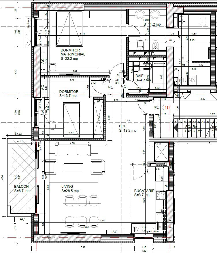 Acest apartament este situat la etajul 2 si are o suprafata construita de 130.6mp, dintre care 102.9mp utili si o terasa de 7.2mp+9mp camera utilitati.
