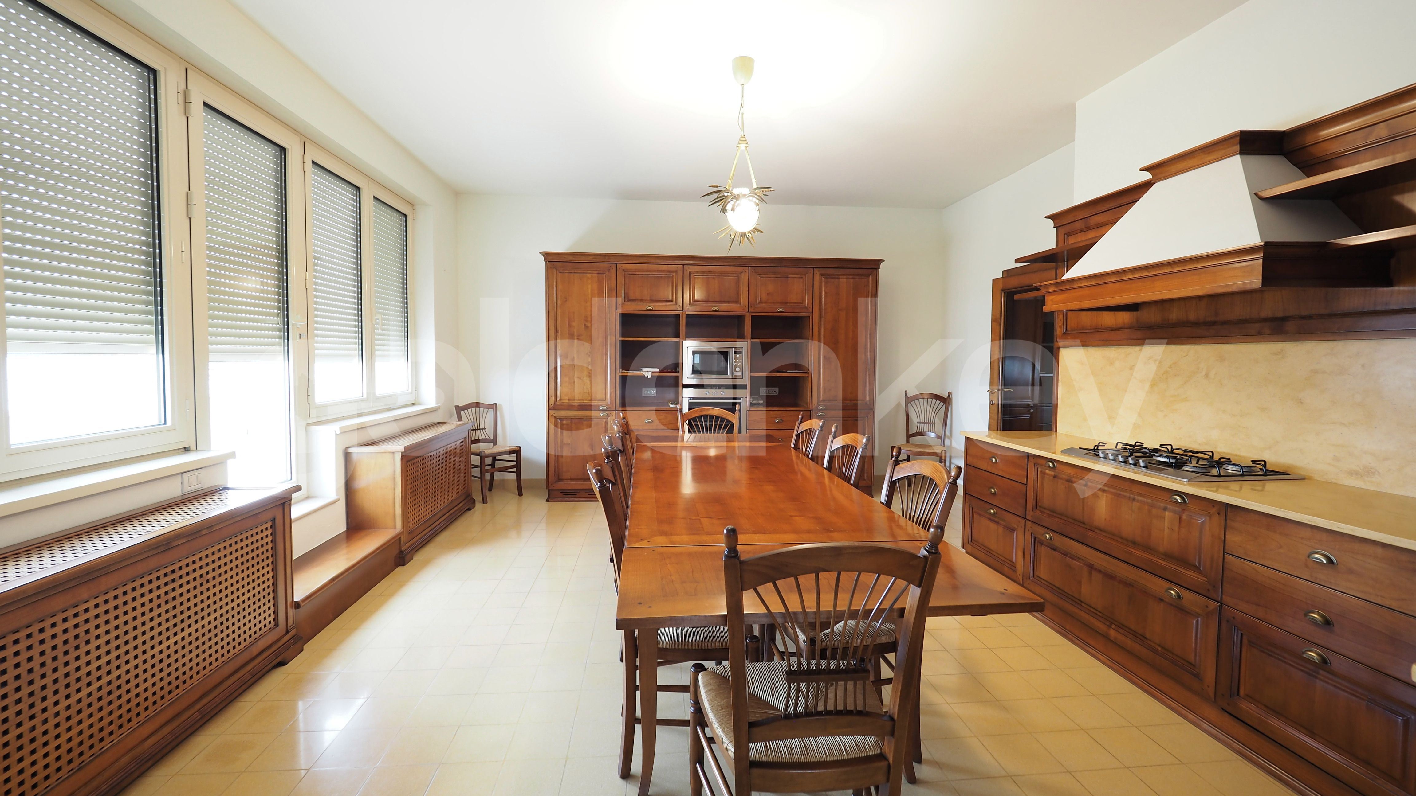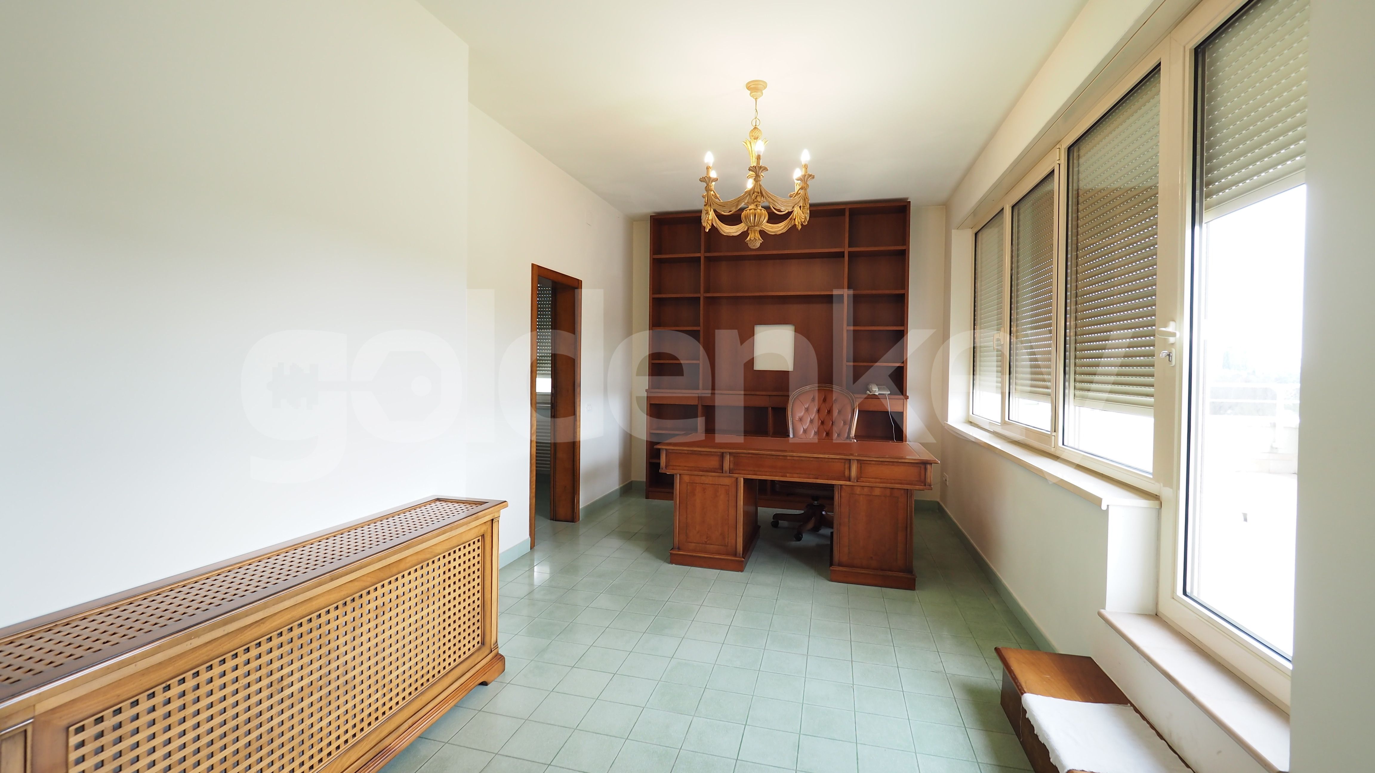 Este compus din living spatios cu spatii mari vitrate(77mp), camera de dining (77mp), birou cu baie proprie, bucatarie separata si echipata, 4 dormitoare cu bai proprii si dressing.