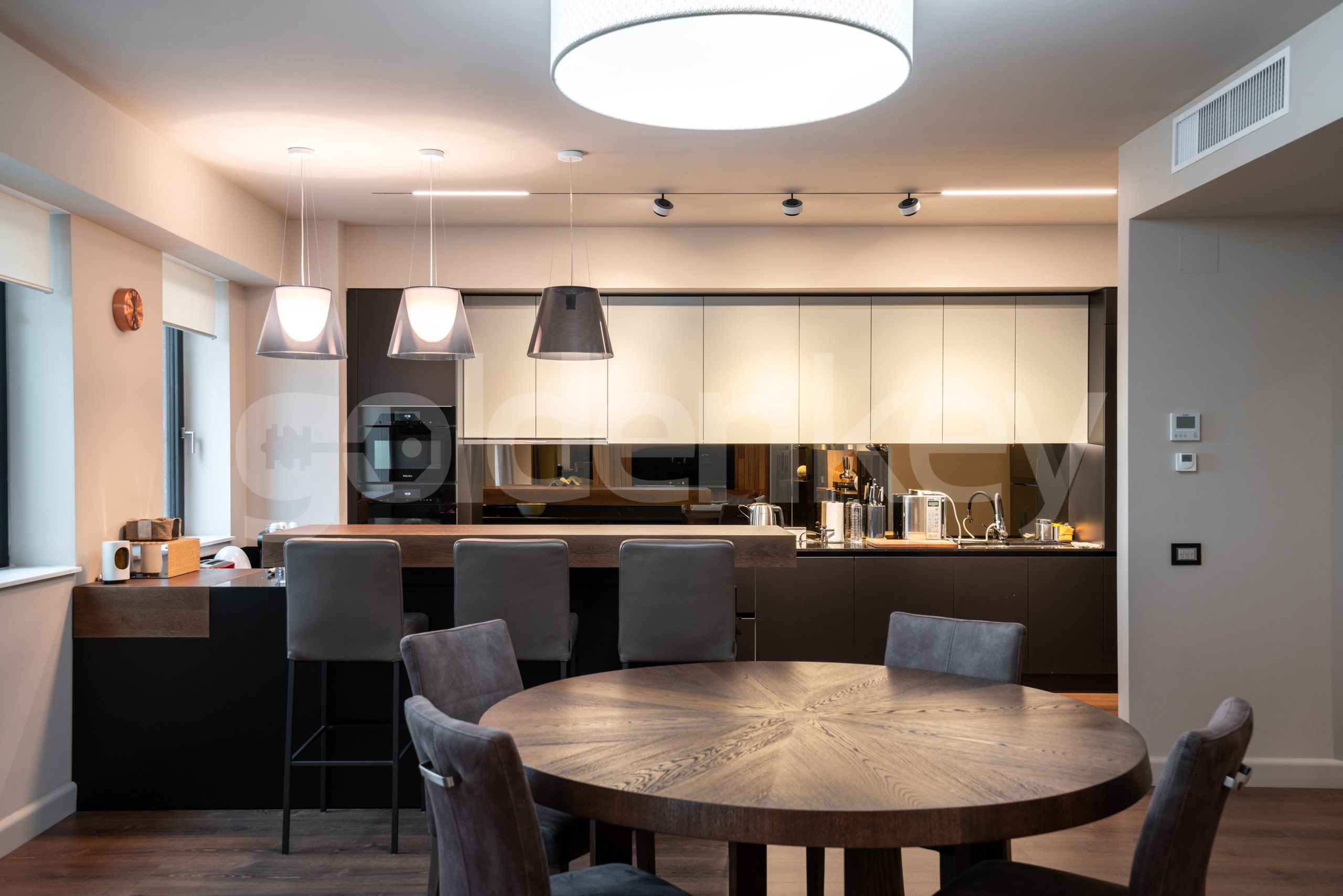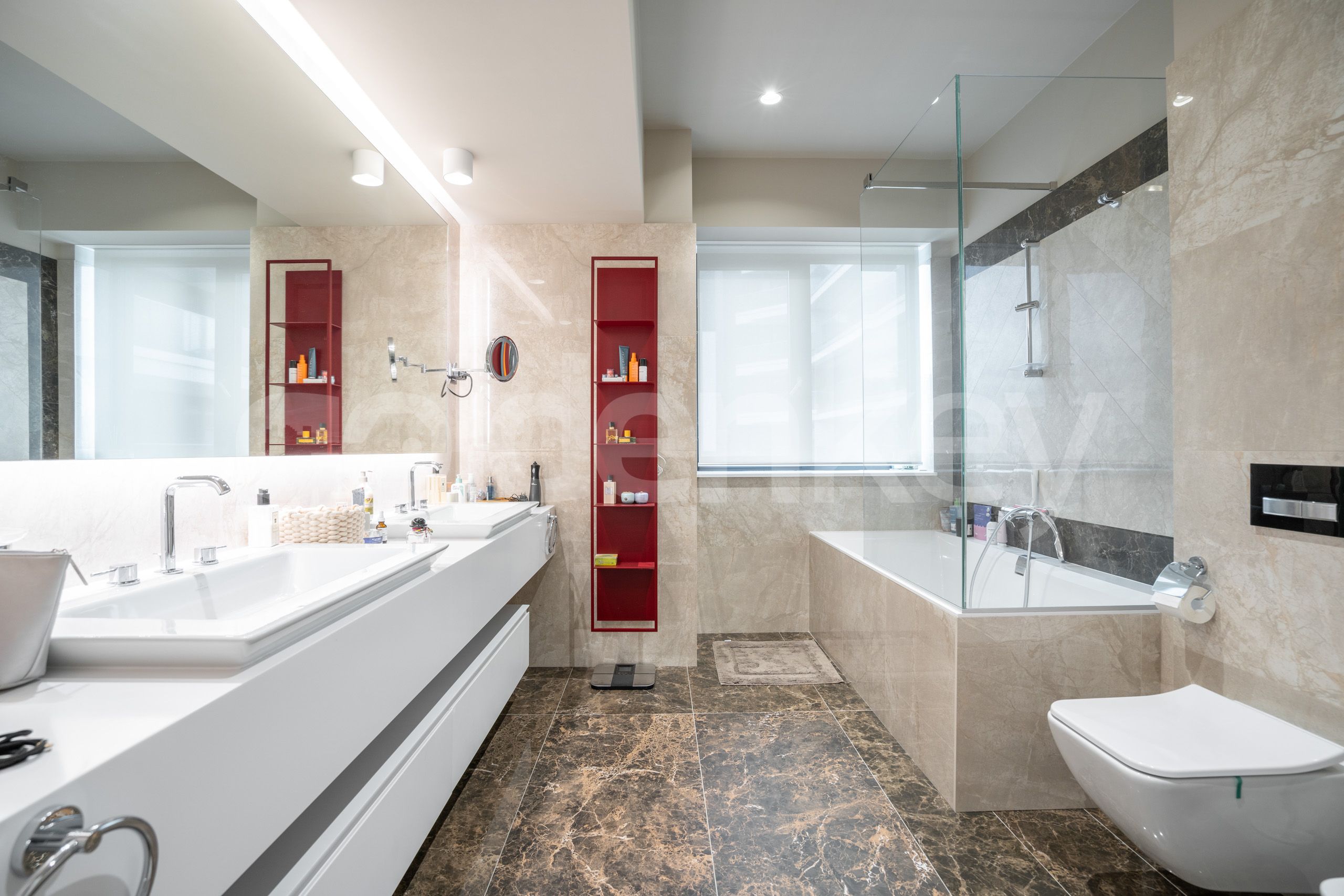 Finisajele sunt de calitate superioara (fatada ventilata, ferestre aluminiu Wicona cu geam tripan, incalzire in pardoseala, aer conditionat Daikin multi-split, ceramica Italia - Atlas Concorde, sanitare Villeroy & Boch si Grohe).