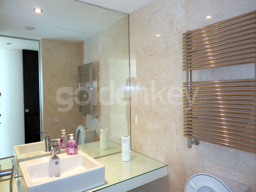 Este compus dintr-un living spatios si insorit cu acces pe terasa, bucatarie deschisa si mobilata, grup sanitar, dormitor matrimonial cu baie proprie si dressing si 1 dormitor secundar/birou cu baie proprie.