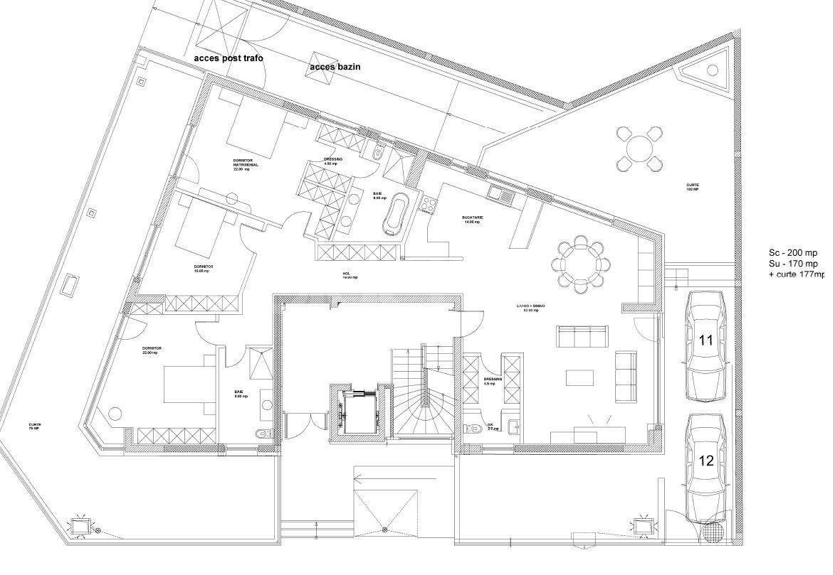 Are o suprafata construita de 200mp dintre care 170mp utili. Dispune de 1 terasa de 177mp ce inconjoara apartamentul.