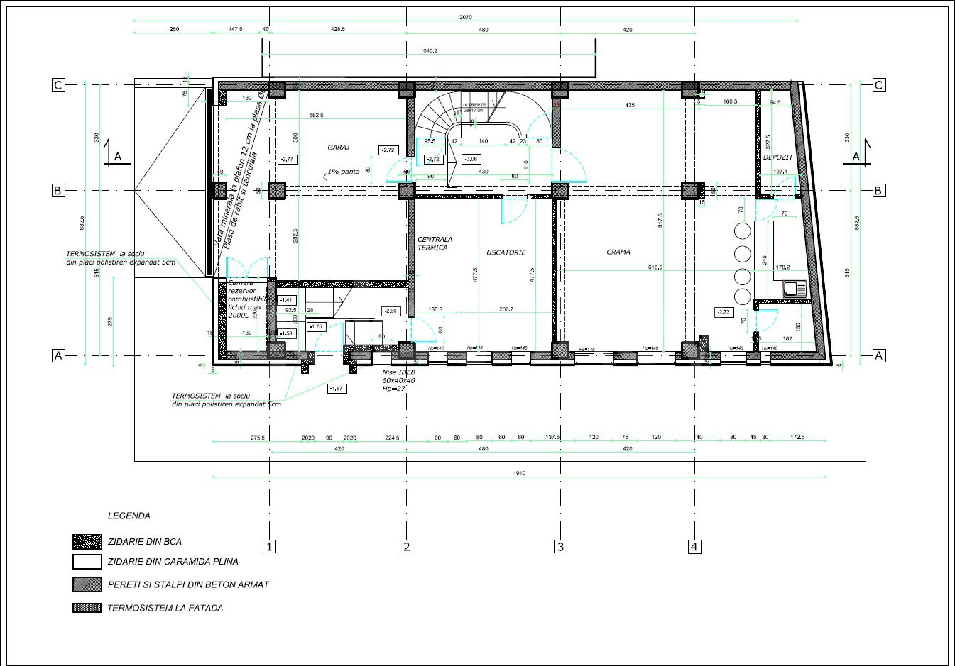 La demisol este un open space, 1 garaj si camera de depozitare.