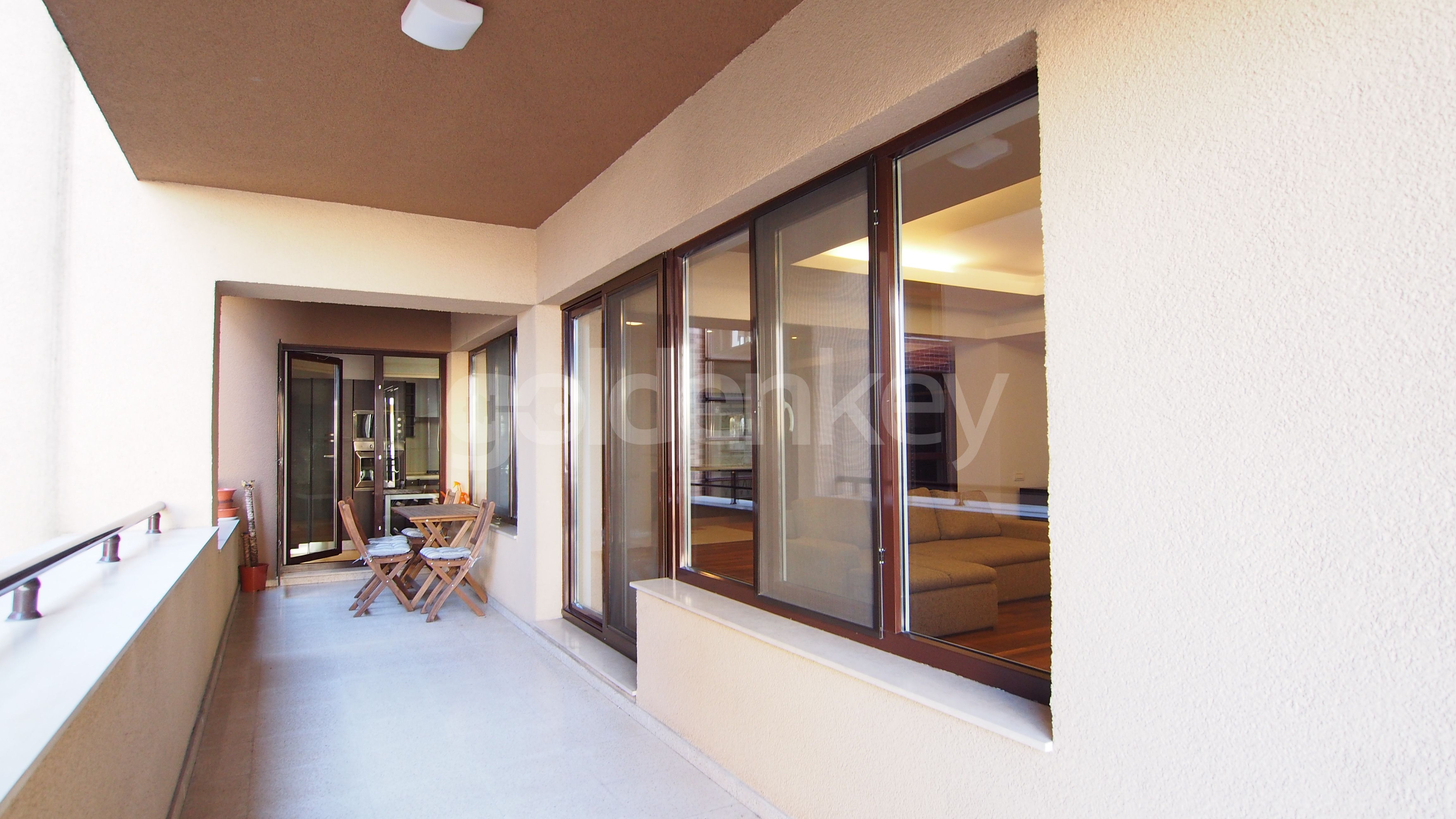 Este compus din living cu zona de dining, terasa, bucatarie semi-deschisa complet echipata, hol, dormitor matrimonial cu baie proprie si terasa, dormitor secundar si grup sanitar cu dus.